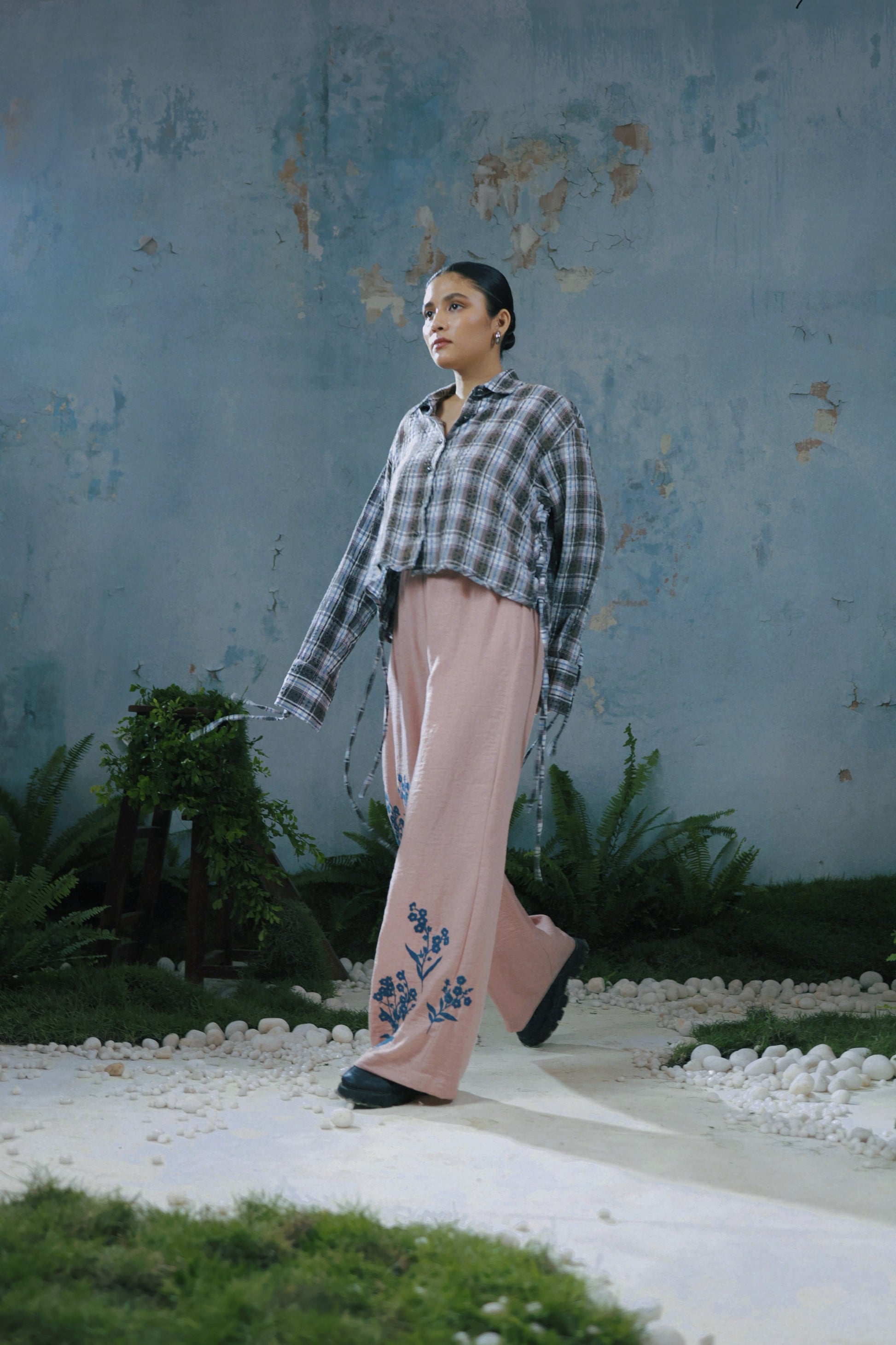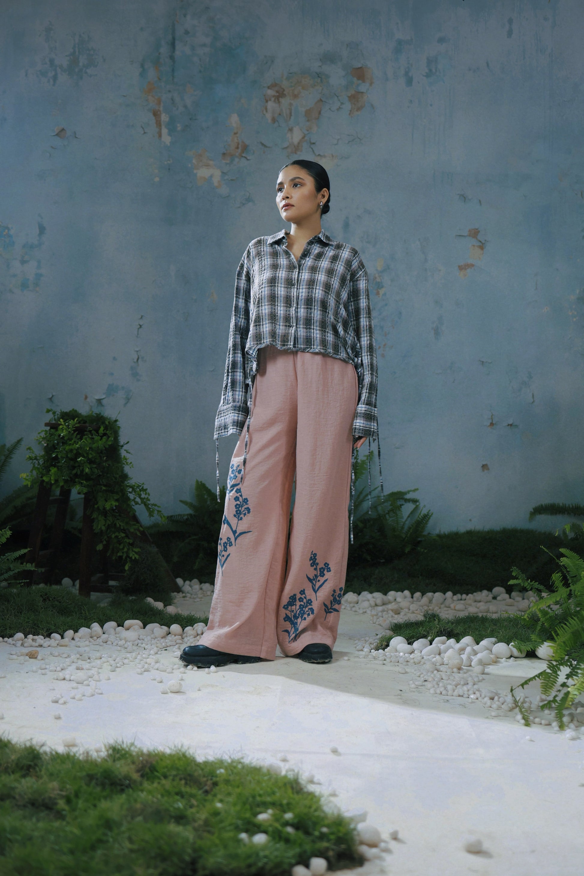 A short, washed plaid shirt that reimagines a timeless English staple with an edge. The silhouette with the lace detail and elongated sleeves lend it subtle rebellion— polished yet nonchalant. Much like the street it’s named after this shirt is a blend of contemporary and classic.